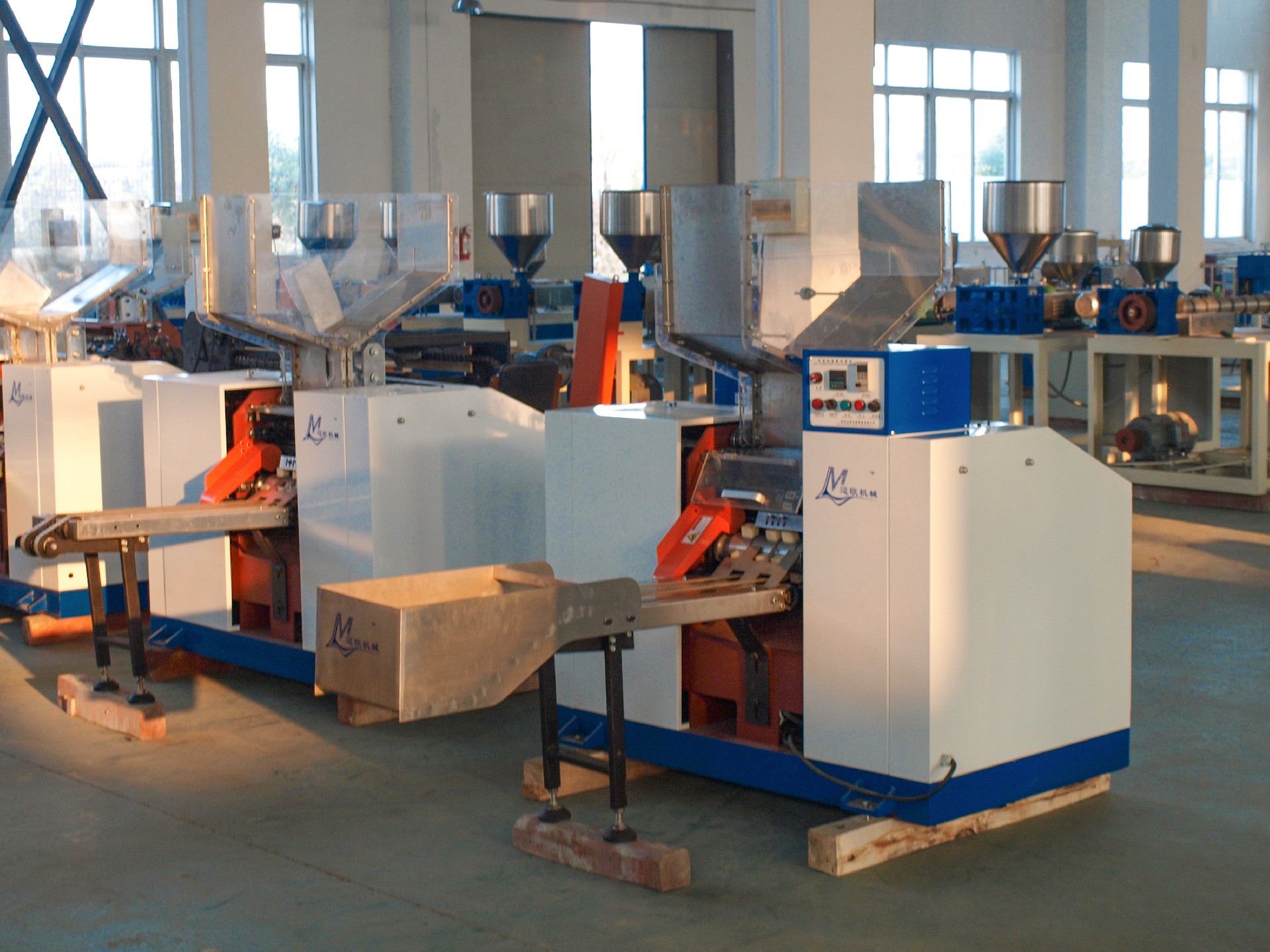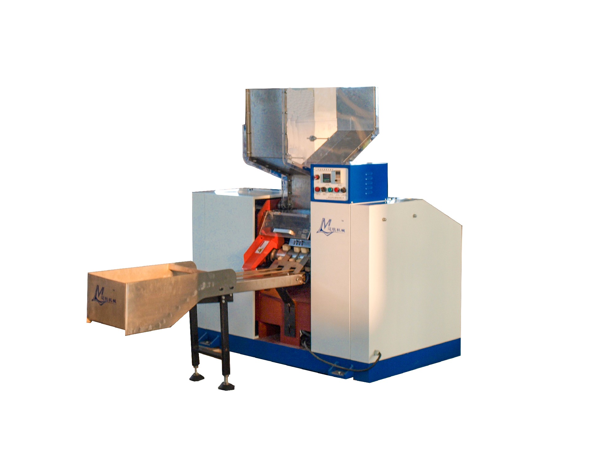 3、出料裝置增設(shè)不銹鋼接料斗,勞動(dòng)強(qiáng)度低,1人可以操作2臺(tái)設(shè)備;