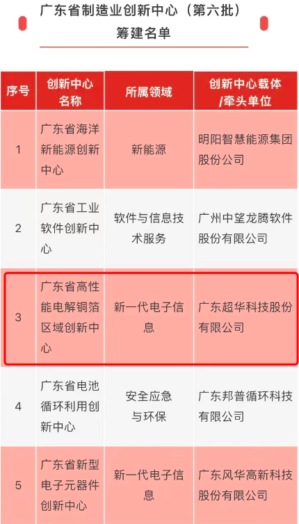 近日,廣東省工業(yè)和信息化廳公布了第六批廣東省制造業(yè)創(chuàng)新中心籌建名單,由廣東超華科技股份有限公司牽頭申報(bào)的廣東省高性能電解銅箔區(qū)域創(chuàng)新中心獲批建設(shè),為廣東制造業(yè)發(fā)展提供創(chuàng)新示范點(diǎn)。據(jù)了解,廣東省制造業(yè)創(chuàng)新中心是面向全省制造業(yè)創(chuàng)新發(fā)展需求,以重點(diǎn)領(lǐng)域前沿技術(shù)和共性關(guān)鍵技術(shù)的研發(fā)供給、轉(zhuǎn)移擴(kuò)散和首次商業(yè)化為重點(diǎn),由企業(yè)、科研院所、高校等各類(lèi)創(chuàng)新主體自愿組合、自主結(jié)合,以企業(yè)為主體,以獨(dú)立法人形式創(chuàng)建的省級(jí)創(chuàng)新平臺(tái),解決關(guān)鍵核心技術(shù)受制于人、產(chǎn)業(yè)共性技術(shù)供給不足、創(chuàng)新成果產(chǎn)業(yè)化不暢的問(wèn)題,滿(mǎn)足廣東省新一代電子信息、新材料、智能制造、高端裝備制造、新能源汽車(chē)、生物醫(yī)藥等戰(zhàn)略性新興產(chǎn)業(yè)發(fā)展需求,助力制造業(yè)轉(zhuǎn)型升級(jí),提高國(guó)家制造業(yè)創(chuàng)新能力。此次超華科技牽頭申報(bào)的廣東省高性能電解銅箔區(qū)域創(chuàng)新中心獲批建設(shè),也體現(xiàn)了超華科技深厚的技術(shù)底蘊(yùn)和實(shí)力。