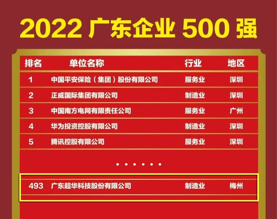 廣東超華科技股份有限公司入選“2022廣東企業(yè)500強(qiáng)”!